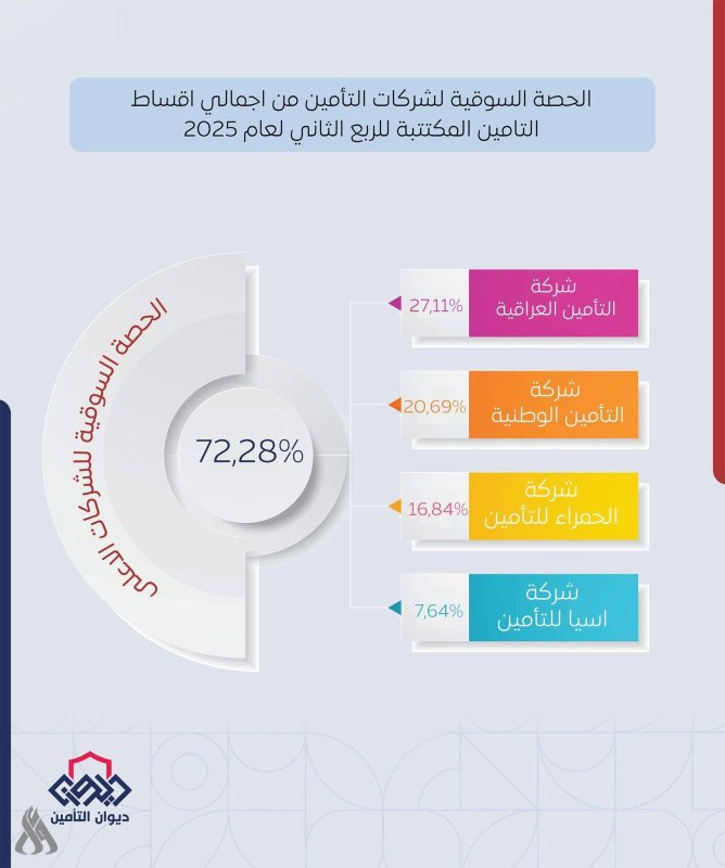 وذكرت الشركة في بيان، أن "شركة التأمين العراقية العامة حققت المرتبة الأولى بين شركات التأمين العاملة في العراق، وذلك وفقاً لتقرير ديوان التأمين الأخير الخاص بالمؤشرات المالية لمراقبة نشاط الشركات التأمينية للأقساط المكتتبة للربع الثاني من عام 2025".