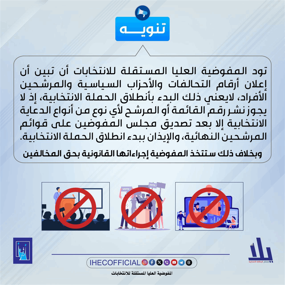وحذرت المفوضية من أنها ستتخذ الإجراءات القانونية بحق المخالفين.