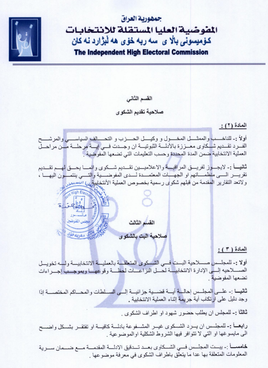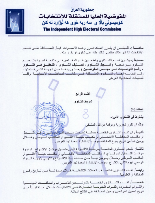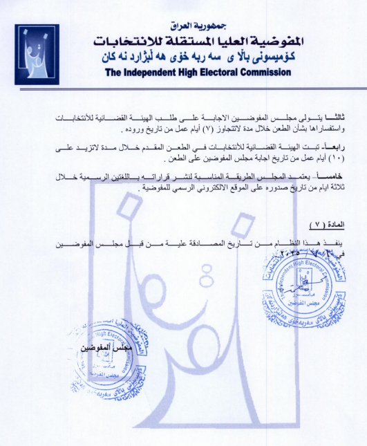 المفوضية تنشر نظام الشكاوى والطعون لانتخابات مجلس النواب لعام 2025